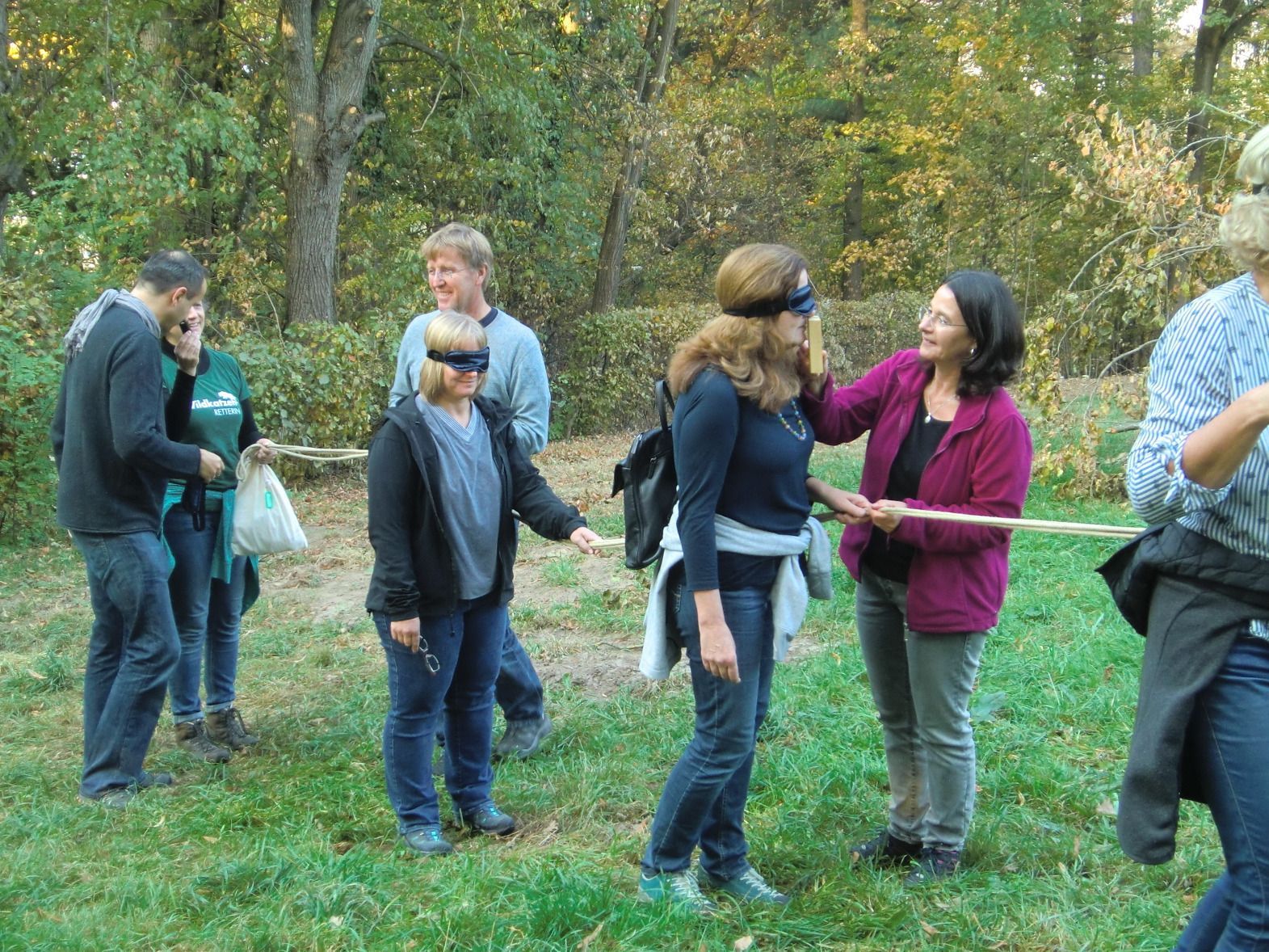 Ein Suchspiel führte den Pädagogen vor Augen, wie sich die scheuen Waldbewohner in ihrem Lebensraum tarnen. Eine feine Nase war nötig, verschiedene Gerüche zu erkennen und dabei auch den von den Wildkatzen geliebten Baldrianduft zu erkennen. Anhand eines Gruppen-Spiels mit einem Seil verdeutlichte die Biologin, dass Wildkatzen zum Überleben großflächige, naturnahe, lebendige Michwälder brauchen und welche Auswirkungen es hat, wenn zum Beispiel Mäuse durch Schädlingsbekämpfungsmaßnahmen vernichtet oder Lebensräume durch Straßenbau zerstört, zerschnitten oder isoliert werden. Auch die Wichtigkeit von Biotopverbundbrücken und Trittsteinbiotopen in der intensiven Agrarlandschaft konnte anhand von Aktionen für alle anschaulich gemacht werden.